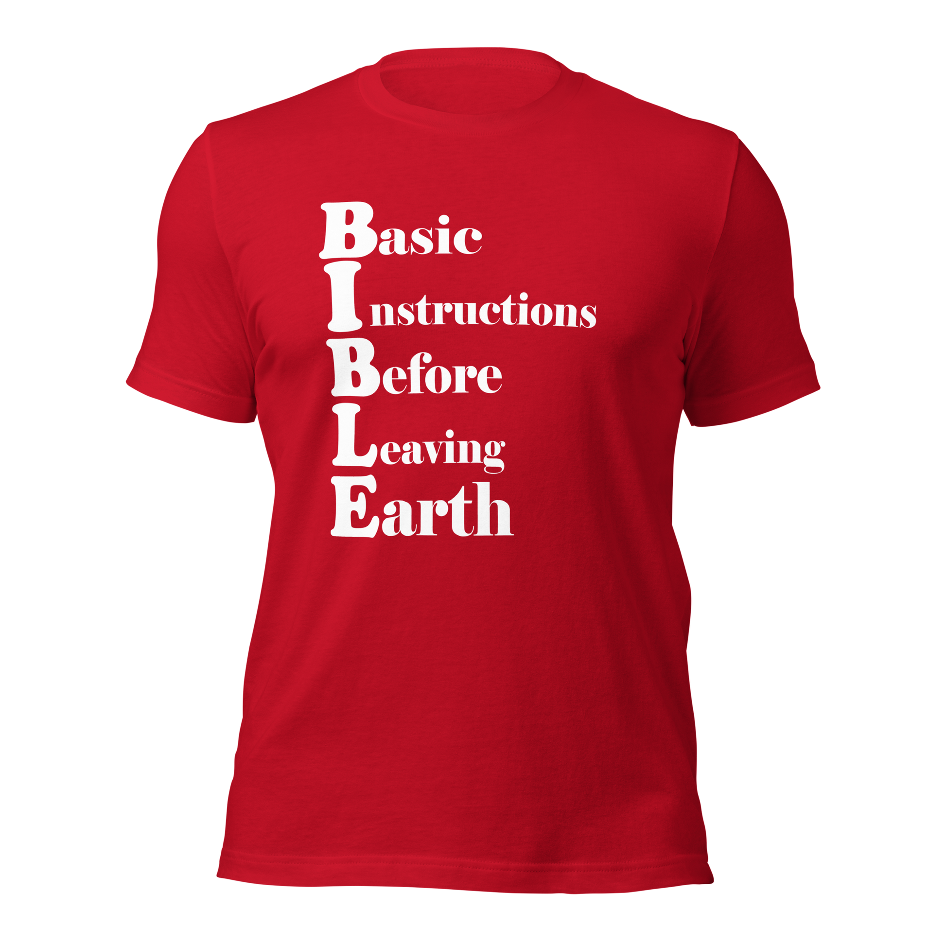 I was at my uncle’s house fixing his computer, wearing one of my shirts that simply said “Bible.” As I was getting ready to leave, he asked me, “Do you know what BIBLE stands for?” I told him, “Yes — Basic Instructions Before Leaving Earth.”